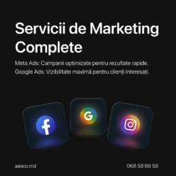 Prin serviciul nostru de Digital Marketing complet, AASCO acoperă tot fluxul de promovare online — de la strategie și planificare până la campanii Meta, Google, SEO, conținut și analiză de performanță.