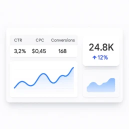 Configurăm structura campaniilor, selectăm cuvintele cheie, setăm complet tracking-ul (GTM, GA4, conversii) și optimizăm continuu anunțurile și bugetele. Asigurăm transparență totală și performanță predictibilă în timp.